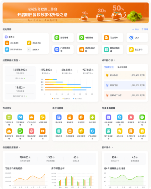 西貝自 2022 年選擇全員使用飛書,實現(xiàn)總部和門店的高效協(xié)同,并通過飛書 OKR 強化組織戰(zhàn)略落地,打造餐飲行業(yè)數(shù)字化最佳實踐。公司介紹西貝是中國餐飲百強企業(yè),旗下西貝莜面村是國內中式正餐經營規(guī)模最大的品牌。西貝 1988 年創(chuàng)立于內蒙古臨河,擁有西貝莜面村、賈國龍功夫菜、西貝海鮮、九十九頂氈房四大品牌。 2020 年 6 月,入選“ 2019 年中國餐飲企業(yè)百強”,2021 年 12 月,入選 2021 內蒙古民營企業(yè) 100 強名單。用飛書構建一站式協(xié)作平臺, 1 秒將重要信息傳達全國 370 家門店作為全國最大的中式正餐連鎖企業(yè),創(chuàng)立 34 年來,西貝在全國 58 個城市開設了 370 家直營門店,員工 26000 人,每年服務 7000 萬消費者。業(yè)務的快速成長,讓組織也面臨更大的挑戰(zhàn)。如何做強總部的專業(yè)化分工、實現(xiàn)各專業(yè)職能部門的橫向打通,增進部門之間的協(xié)同關系,加強總部到全國門店的順暢溝通,成為西貝在數(shù)字化經營過程中面臨的重要挑戰(zhàn)。完成向飛書的遷移后,西貝用飛書打通全員通訊錄,總部可即時聯(lián)系到任意門店的任意一個員工,員工間可設置精細的溝通權限管控,找人、溝通都更便捷。使用飛書會議異地溝通,支持千方同時參會,一鍵發(fā)起企業(yè)內直播,讓會議更高效。會后飛書妙記自動生成錄像及逐字稿,1.8 萬字會議紀要只需 5 分鐘,準確率高達 98% 以上,讓會議結論有據(jù)可循。西貝還將公司內的各類文檔遷移到飛書文檔中,并使用知識庫實現(xiàn)重要信息的整合、沉淀。使用飛書前,資料沉淀在本地文件中,文件傳達到全國員工,需員工層層復制轉發(fā)、效率低。使用飛書后,可以用一個在線鏈接,和所有員工分享最新版本內容,并支持隨時更新。文檔權限可嚴格管控,限制復制和下載權限,僅限內部查閱,重要信息可 1 秒加急上萬人,使命必達。用飛書,僅需 1 小時搭建業(yè)務表格管理供應商抽檢、開票工單餐飲上下游環(huán)節(jié)眾多,有大量非標準化的業(yè)務場景。這些業(yè)務場景無法通過成熟第三方系統(tǒng)實現(xiàn)業(yè)務數(shù)字化,而團隊靠填表、傳文件、人工匯總的方式運轉,又低效繁瑣。飛書多維表格可靈活搭建輕便的業(yè)務數(shù)字化工具,系統(tǒng)“想要就能有”,最快 1 小時即可上線。比如,西貝食品安全巡視組會定期進行供應商、門店的抽檢。使用飛書前,所有小組成員需在 Excel 上填寫相關信息,信息層層上交、匯總,部門逐級催辦,數(shù)據(jù)統(tǒng)計報告制作繁瑣,每次抽查,往往需要 1 整個工作日專人進行資料整理。使用飛書后,團隊將抽檢工作通過飛書多維表格協(xié)作,使用表格分配任務、系統(tǒng)自動提醒還未提交的成員,數(shù)據(jù)分頭錄入、自動匯總,并能通過儀表盤實時展現(xiàn)數(shù)據(jù)洞察。類似的,通過多維表格搭建開票流程的協(xié)作工具,也讓西貝團隊每年省下 65 人·天。西貝門店與客服中心的同事,經常遇到客戶補開發(fā)票的需求。客戶離店后需補開發(fā)票,無法按常規(guī)開票流程自助實現(xiàn),往往需要客服、財務、門店多方協(xié)協(xié)助完成。使用飛書前,客服或門店接到客戶特殊開票需求后,需與客戶人工收集相關信息;部分開票信息不規(guī)范、不全面,可能需要和顧客二次溝通,效率低下、影響顧客體驗;相關信息通過即時消息與財務溝通,無法清晰掌握開票進度,協(xié)作成本高;每次開票信息都需要財務系統(tǒng)中人工確認匹配,操作易出錯;使用飛書后,客戶點擊客服提供的鏈接、或在門店掃碼,填寫飛書表單,可準確提交開票信息;系統(tǒng)自動通知財務同事處理開票;多維表格內自動根據(jù)客戶所在門店匹配對應開票信息,省去人工確認;客服完成開票后,系統(tǒng)自動提醒客服或門店辦結情況。從消費者到門店員工,再到總部客服、財務團隊,使用多維表格無縫連通,信息效率大大提高。用飛書搭建學習群,自動化沉淀組織洞察與思考西貝倡導建設學習型組織,在高管團隊中建立“日清日高”學習群(今天完成的事情必須比昨天有提高,明天的目標必須比今天更高),鼓勵每位高管每日分享工作心得體會,并將內容匯總、沉淀西貝文化,持續(xù)擴大影響力。使用飛書前,西貝需安排專人負責匯總群內消息,員工需逐條手工匯總,費時費力,資料沉淀在本地文件中,難傳播、檢索。使用飛書后,飛書群內機器人可將群消息自動同步到多維表格中,并自動生成精致的畫冊視圖,員工打開多維表格可隨時查看最新分享內容,用工具固化文化,讓思考形成文化資產,實現(xiàn)企業(yè)文化的有效沉淀、落地,據(jù)統(tǒng)計,每年也可節(jié)省 23.5 人·天的人工摘錄、匯總時間。此外,西貝還在與飛書共創(chuàng)餐飲行業(yè) OKR 最佳實踐,以 OKR 對齊核心團隊前進方向,確保戰(zhàn)略落地,探索 OKR 工作法的“西貝化”。